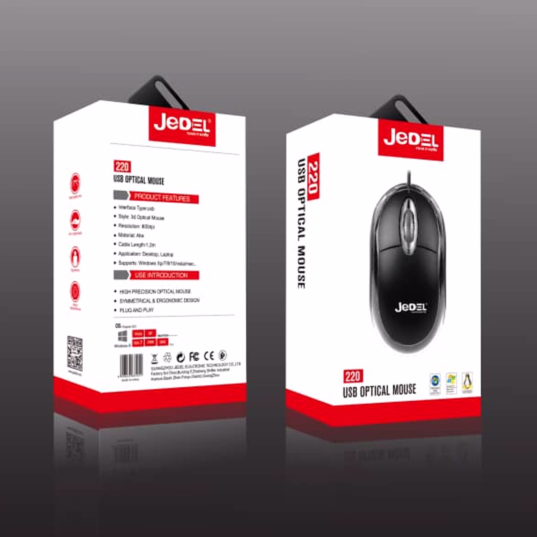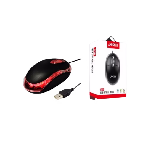 JEDEL 220 optical USB wired mouse with ergonomic design and smooth tracking, ideal for office and everyday computer use.